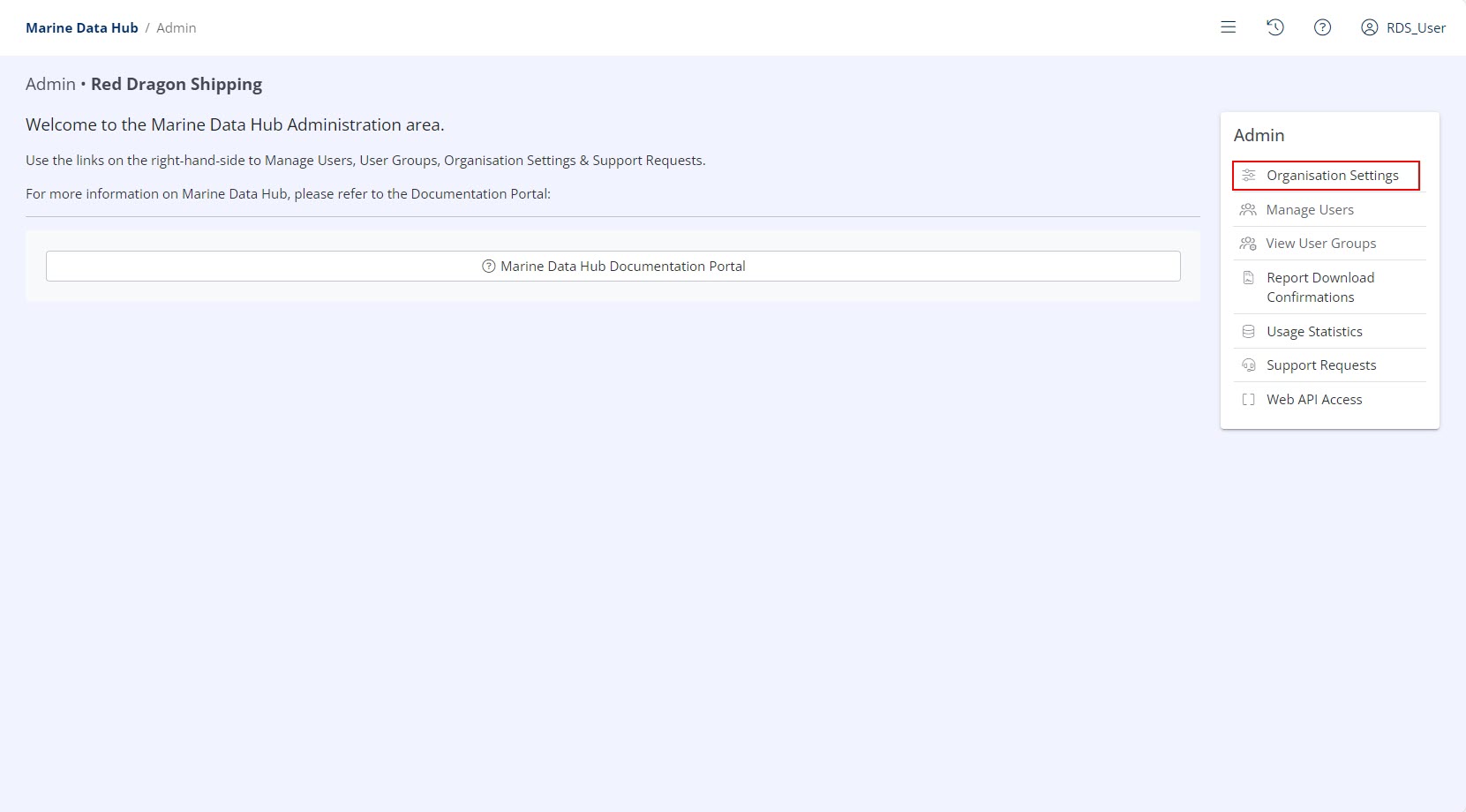The Organisation Settings section is located in the Administration Menu. For more information on how to access the Administration Menu, refer to Navigate to the Admin Area.