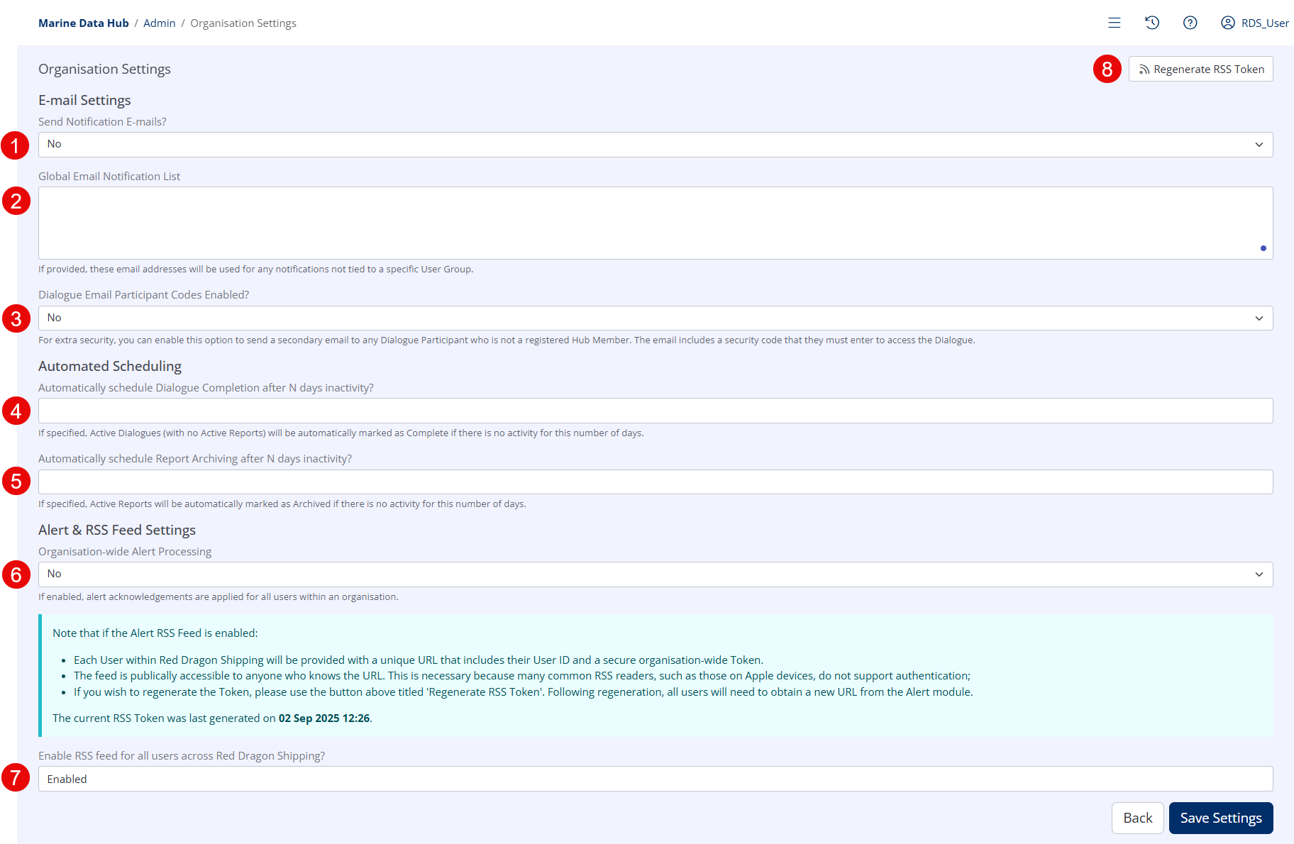 - This option will expire and regenerate all RSS tokens for all users in your organisation. If this option is used then users must obtain a new token from the Alerts module of the Dashboard.