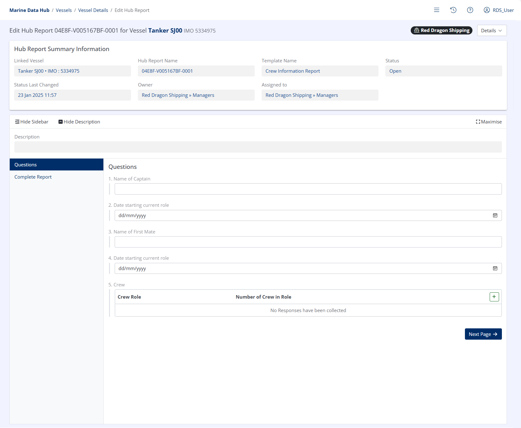 Provide the required information. There may be multiple pages and several different question types depending on the specific Report.